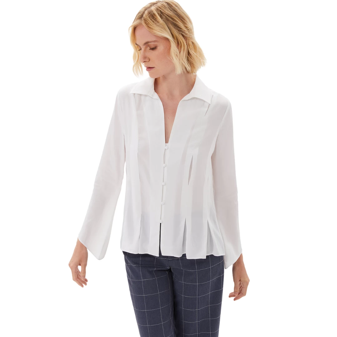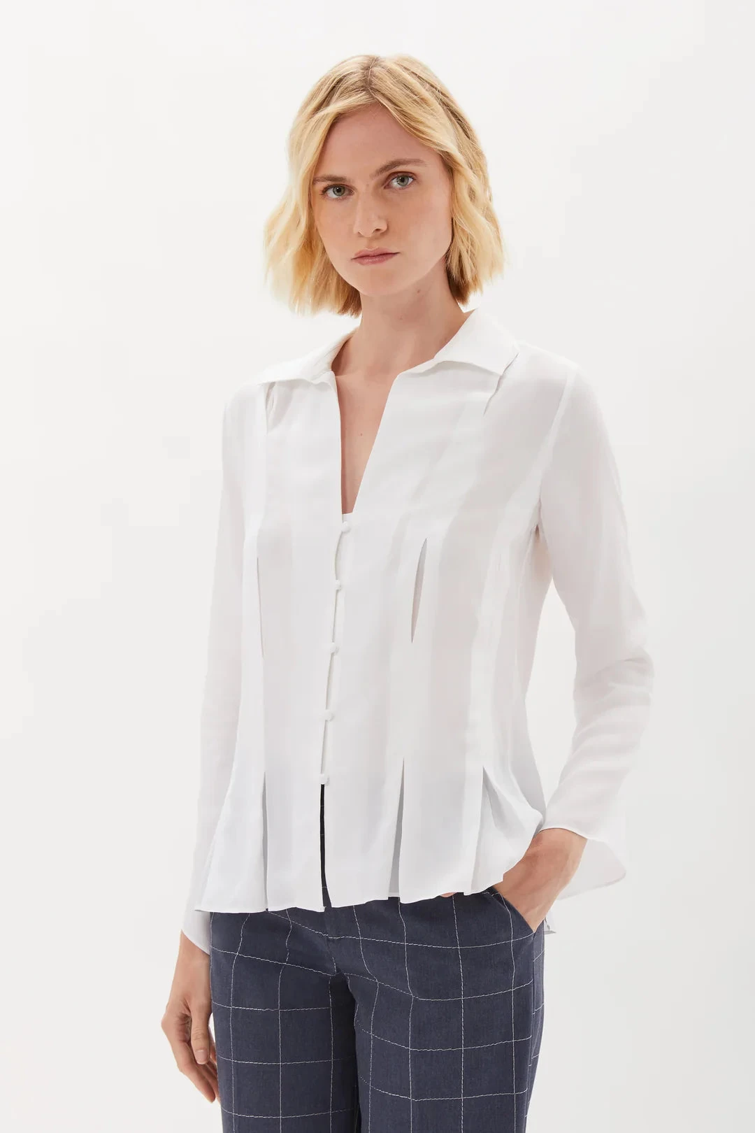 Indulge in the elegant sophistication of the Swinton Box Pleat Blouse. This timeless blouse exudes a chic and exclusive vibe, perfect for the office or any upscale event. The expertly crafted box pleats add a touch of luxury, making this blouse a must-have for any fashion-forward wardrobe.
