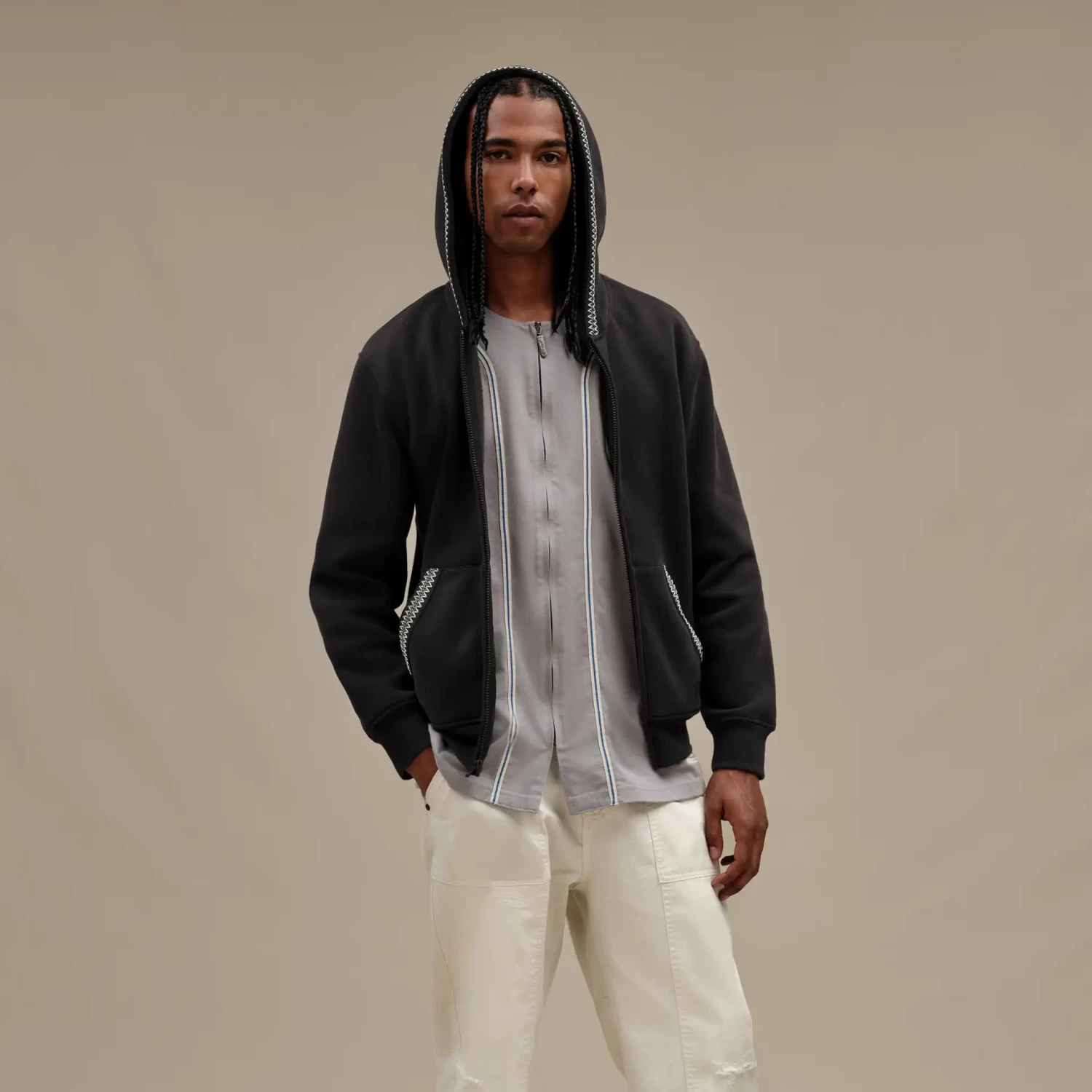 Elevate your wardrobe with the Tasman Hoodie in Tar. Made with a cozy cotton blend and 45% recycled fibers, this hoodie offers both warmth and sustainability. The contrasting UGGbraid® details on the hood and pocket add a touch of texture and classic style. Pair it with the Tasman Jogger for a complete look.
