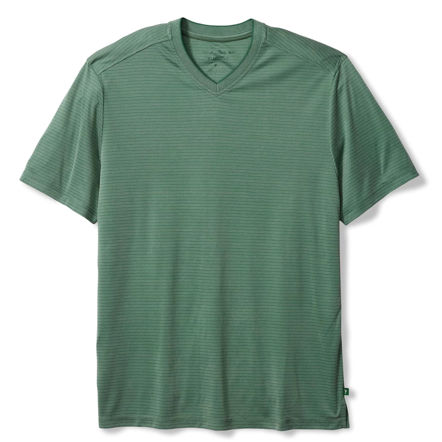 The Bay Stripe V-Neck T-Shirt in Spruce Frost by Tommy Bahama delivers the perfect blend of style and performance for your everyday wardrobe. Made from a moisture-wicking fabric, this men’s V-neck tee keeps you cool and comfortable whether you’re on the move or kicking back. With its subtle stripe pattern and relaxed fit, it’s a versatile staple you’ll reach for again and again—and one you’ll want in every color.