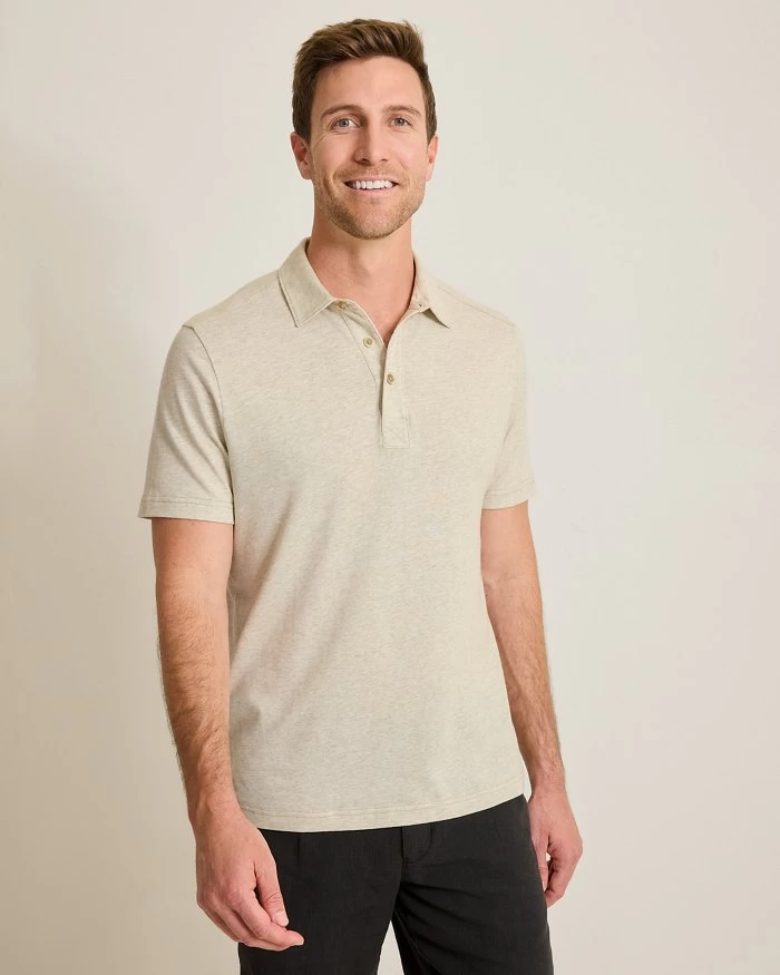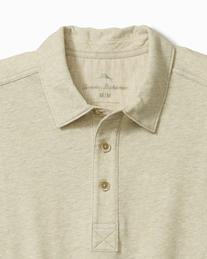 The Laurito Beach Linen-Blend Polo in Khaki Heather by Tommy Bahama brings laid-back luxury to your warm-weather wardrobe. Crafted from a soft, lightweight linen-cotton blend, this men’s casual polo features a subtle piqué texture and sun-washed color for an effortlessly relaxed look. Trim details elevate the design, making it ideal for everything from weekend getaways to casual evenings out. Easy, breathable, and endlessly versatile, this polo defines understated summer style.