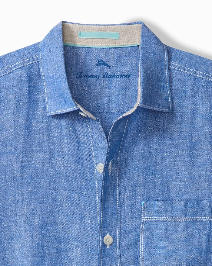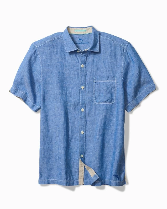 Breeze through your day in effortless style with the Paradise Breezer Short-Sleeve Shirt in Victoria Blue by Tommy Bahama. This lightweight linen-blend shirt features a soft, textured drape and rich color that elevates your warm-weather wardrobe. Designed for comfort and laid-back luxury, it’s the perfect choice for vacations, beach weddings, or casual nights out. A timeless staple that combines breathability with refined ease, the Paradise Breezer is your go-to for island-inspired sophistication.