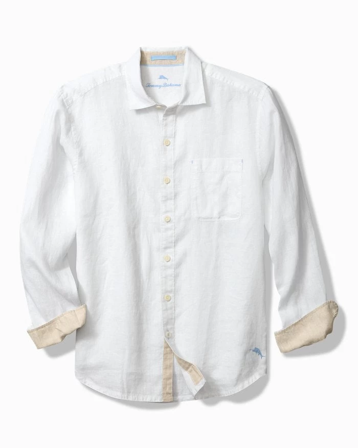 The Paradise Breezer White Long-Sleeve summary-down by Tommy Bahama combines exceptional color and a lightweight, textured drape to bring your wardrobe a luxe, carefree linen look. Soft and comfortable, this long-sleeve shirt is perfect for getaways and special occasions, offering a timeless style that’s both elegant and effortless.