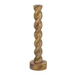 Add an exotic touch to the home decor with the hand-carved mango wood Twisted Taper Holder in natural. This stunning piece stands at 14.25 inches tall and features a round shape measuring 3.25 inches in diameter, making it the perfect addition to any space. The craftsmanship of this taper holder is evident in its intricate twisted design, hand-carved from mango wood. The natural finish adds warmth and rustic charm to its appearance, creating a cozy atmosphere in any room. Whether hosting an intimate dinner party or simply looking for a stylish accent piece, this hand-carved mango wood taper holder is sure to impress guests while adding an element of natural beauty to the home.