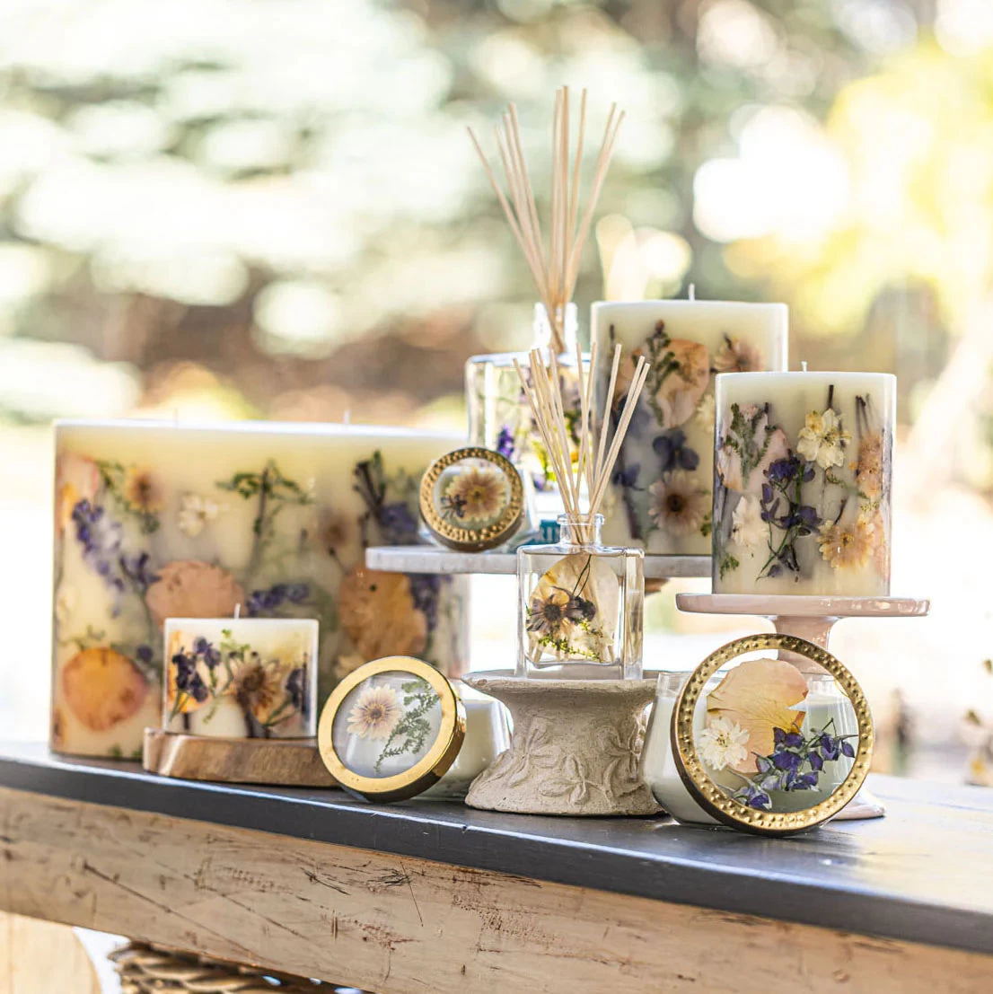 With every botanical element placed carefully by the hands of our candle artisans, these beautifully fragrant candles can take up to 3 days to perfect. During this process each candle is carefully touched 10 different times, from pouring our exclusive wax blend by hand, to lovingly shaping each piece by hand and knife. This artisanal process ensures that the candle appeals to multiple senses by filling your space with fragrance and illuminating botanical elements.