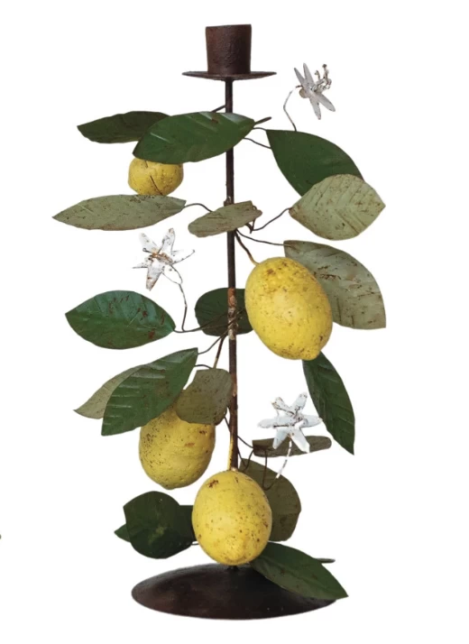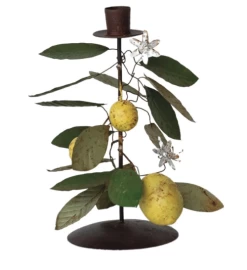 These Vintage Lemon Taper Holders in two sizes are a celebration of nature’s simple beauty, standing 11.5 inches tall with a 6-inch diameter. The metal construction promises longevity, while the playful lemon and leaf embellishments add a burst of freshness to any setting. Designed to hold taper candles, they cast a warm, inviting light that’s reminiscent of sunny days in a citrus orchard. Whether placed in a bustling kitchen, a serene bedroom, or an outdoor patio, these candle holders are sure to brighten the atmosphere with their charming presence and farmhouse appeal.