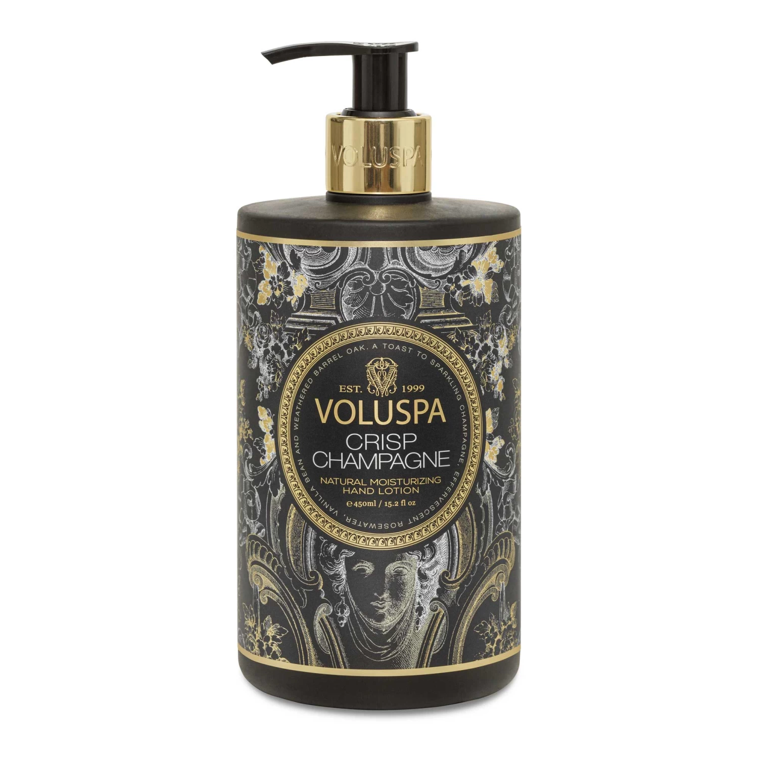 Indulge in luxury with our Crisp Champagne Hand Lotion. Its elegant, frosted bottle boasts a custom design featuring muted gold accents and a chrome gold collar. This moisturizing lotion captures the aroma of vanilla, apples, and peaches, evoking the anticipation and celebration of a bottle of champagne. Perfect for every day, every occasion.