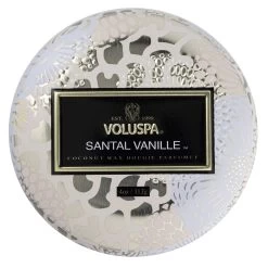 Indulge in the luxurious scent of Voluspa’s Santal Vanille Mini Tin Candle. Made with a blend of intoxicating vanilla, exotic oud, and warm sandalwood, this candle creates a sensual and creamy brulée aroma that will cast a warm and alluring glow. Hand-poured in the US with a clean-burning coconut wax blend and natural wicks, and adorned in a beautiful Japonica patterned metal vessel, this candle is a must-have for any vanilla lover. Enjoy its fragrance for up to 25 hours and add a touch of sophistication and elegance to your space.