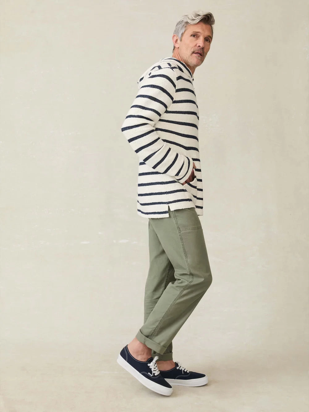 The Whitewater Hoodie in Boothbay Stripe by Faherty puts a modern spin on a laid-back classic. Crafted from a super soft, two-tone jacquard herringbone fabric, this lightweight men’s hoodie brings effortless California cool to your everyday look. With its relaxed fit and breathable feel, it’s perfect on its own or paired with the matching Whitewater Joggers for a casual, elevated set.