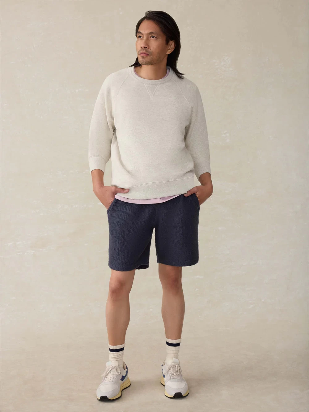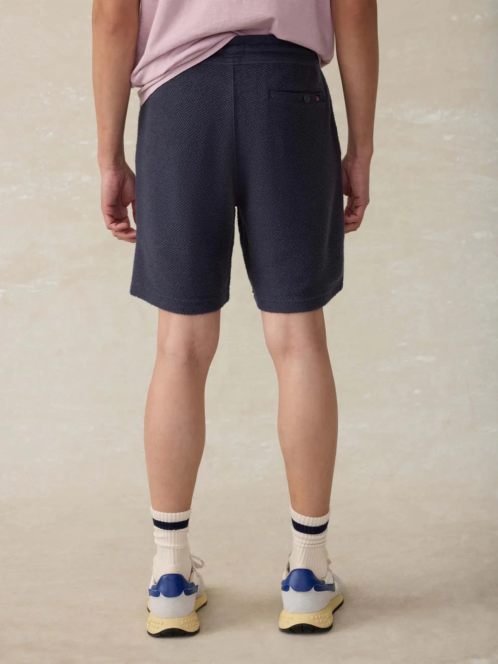 The Whitewater Sweat-short in Fjord by Faherty combines everyday comfort with elevated design. Crafted from an ultra-light multicolor jacquard knit and washed for exceptional softness, these men’s knit shorts feature classic sweatshort styling with a refined edge. With an elastic waistband, practical pockets, and breathable fabric, they’re ideal for weekend wear, travel, or the gym—a versatile staple built for movement and relaxation.