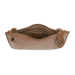 Introducing our luxurious Woven Wristlet, crafted with faux woven vegan leather in neutral shades for a textured, elevated look. Our iconic turn lock clutch can be easily transformed into a cross body or wristlet with the detachable straps. Elevate your style with this versatile and sophisticated accessory.