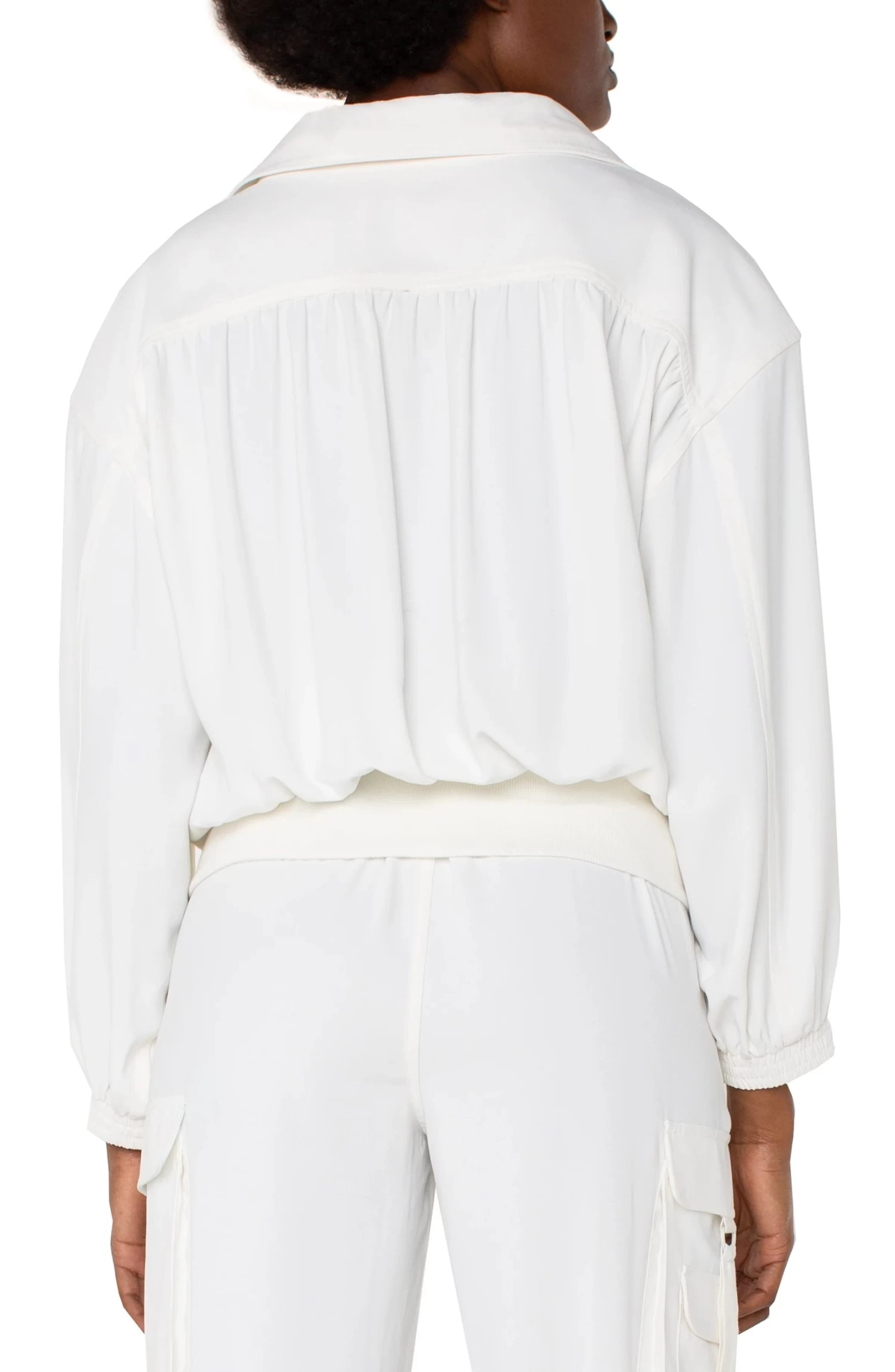 Get ready to turn heads with this trendy jacket featuring dolman sleeves, a concealed zipper, and an elasticized hem. Plus, the wide mock neck collar and adjustable drawcords add an extra touch of style. Pair with the Parachute Cargo Pant for casual outings and make a statement!